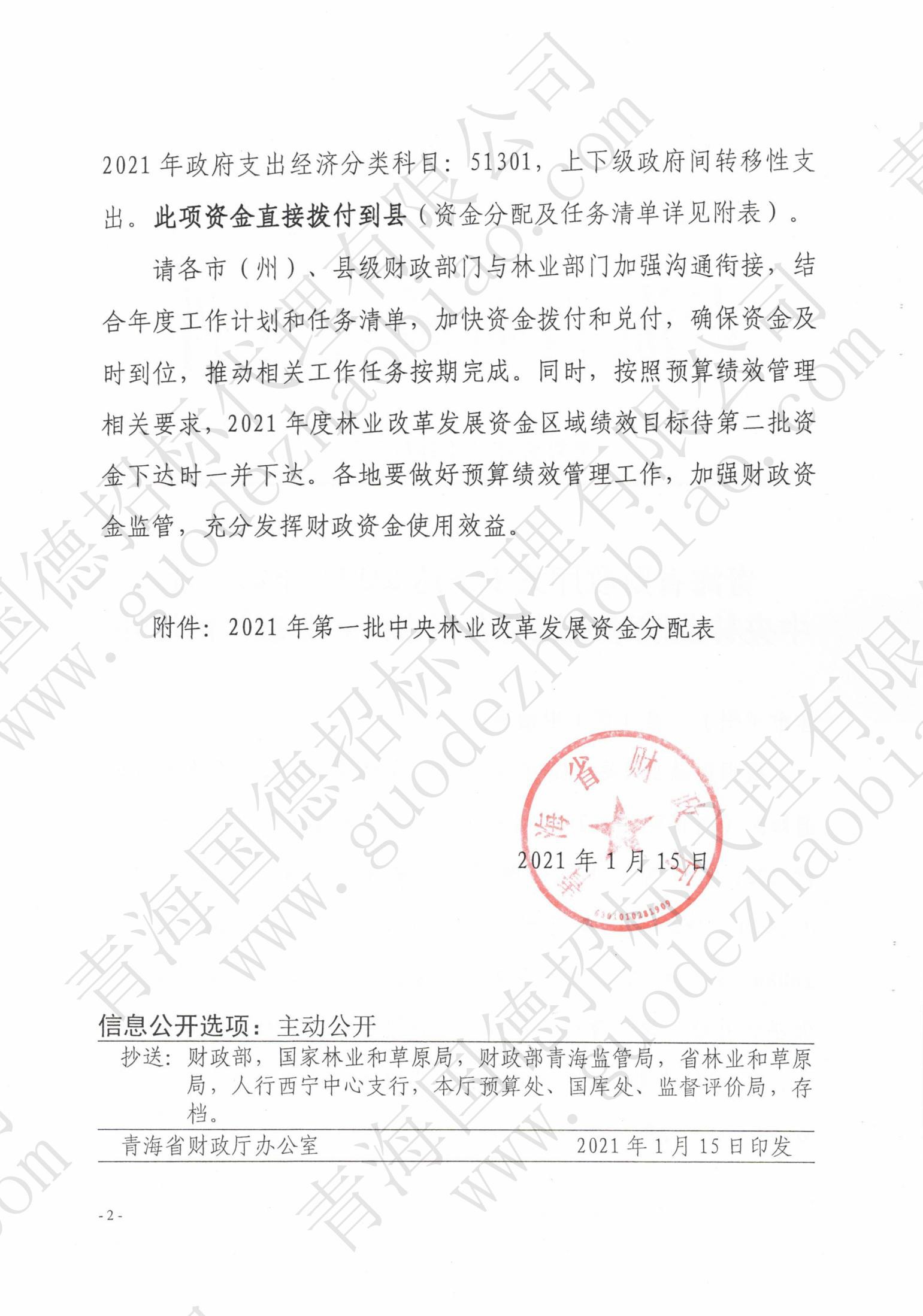 青海省財(cái)政廳關(guān)于下達(dá)2021年第一批中央林業(yè)改革發(fā)展資金(市州、縣級)的通知