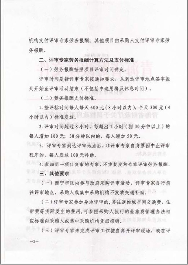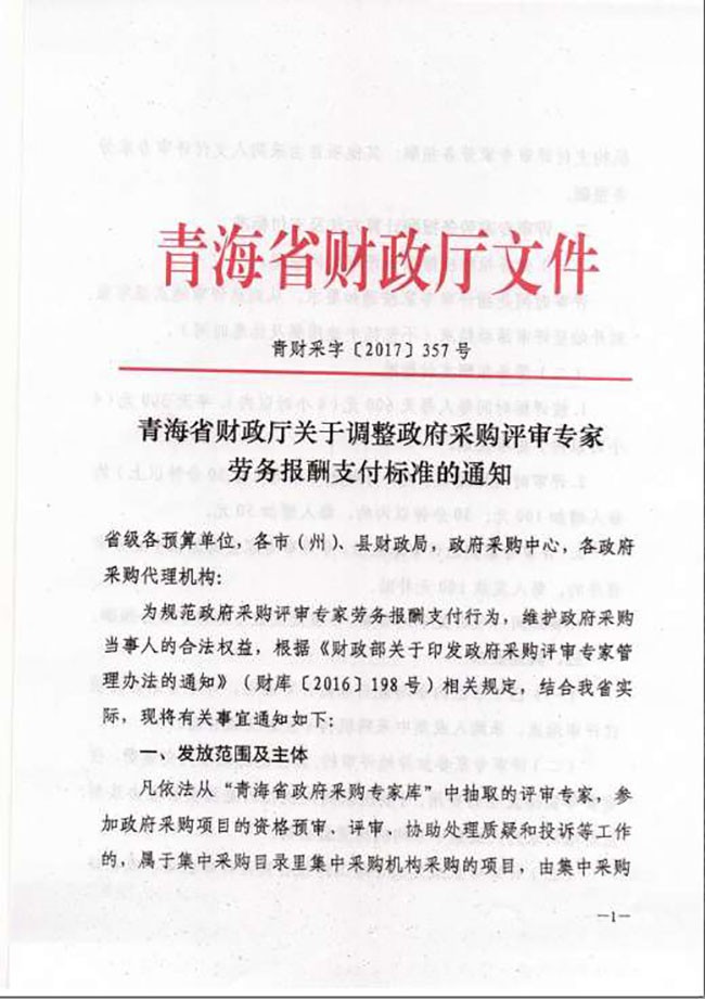 青海省財(cái)政廳關(guān)于調(diào)整政府采購評(píng)審專家勞務(wù)報(bào)酬支付標(biāo)準(zhǔn)的通知(青財(cái)采字〔2017〕357號(hào))