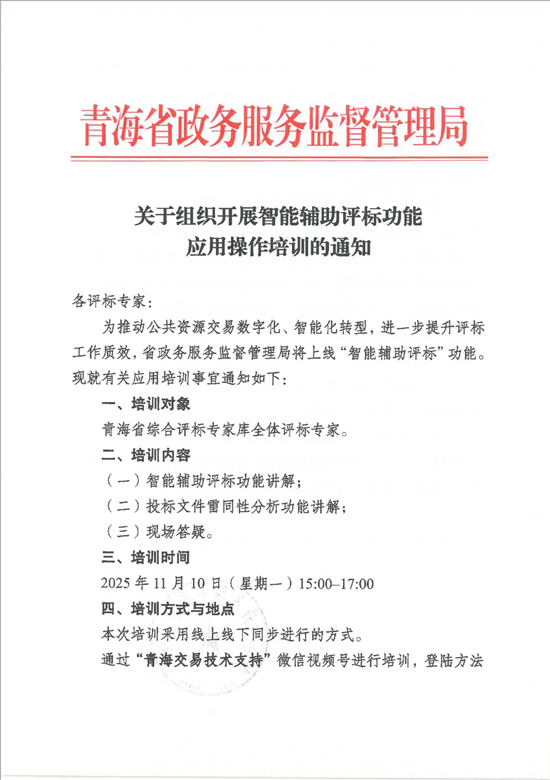 關(guān)于組織開展智能輔助評(píng)標(biāo)功能應(yīng)用操作培訓(xùn)的通知